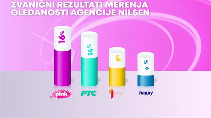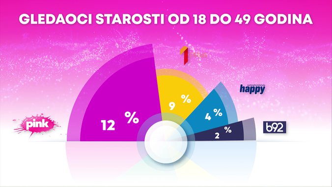 Televizija Pink bila je gledanija od svih komercijalnih emitera, ali i Javnog servisa Srbije u totalu, među ženskom publikom, među ženskom publikom starosti od 18 do 49 godina i među urbanom populacijom, dok je od svih komercijalnih televizija bila gledanija među gledaocima starosti od 18 do 49 godina, među gledaocima sa teritorije Beograda, kao i među gledaocima iz pretonice starosti od 18 do 49 godina.