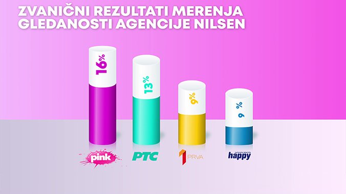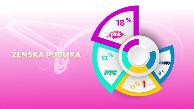 Televizija Pink je od svih komercijalnih emitera ali i Javnog servisa Srbije bila gledanija u totalu, među ženskom publikom, među ženskom publikom starosti od 18 do 49 godina i među urbanom populacijom, dok je od svih komercijalnih emitera bila gledanija među gledaocima starosti od 18 do 49 godina, kao i među gledaocima sa teritorije Beograda.