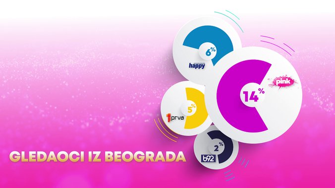 Televizija Pink je od svih komercijalnih emitera bila gledanija u totalu, među gledaocima starosti od 18 do 49 godina, među ženskom publikom starosti od 18 do 49 godina, među gledaocima sa teritorije Beograda, među gledaocima iz prestonice starosti od 18 do 49 godina i među urbanom populacijom, dok je i od Javnog servisa Srbije bila gledanija među ženskom publikom.