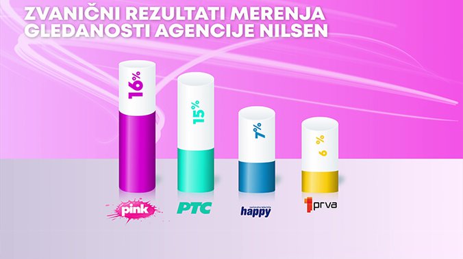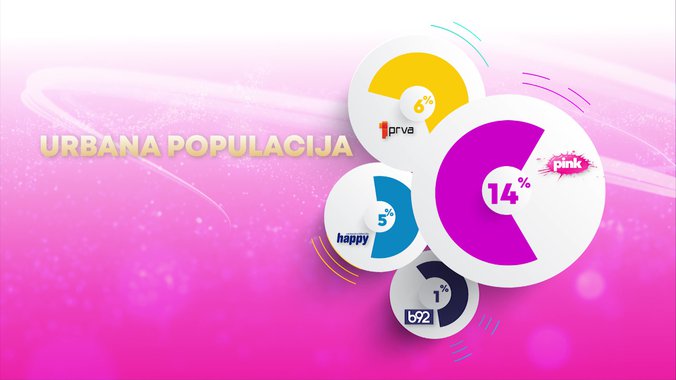 Televizija Pink je od svih komercijalnih emitera, ali i Javnog servisa Srbije bila gledanija u totalu, među ženskom publikom, među ženskom publikom starosti od 18 do 49 godina, među gledaocima sa teritorije Beograda i među gledaocima iz prestonice starosti od 18 do 49 godina, dok je od komercijalnih televizija bila gledanija među gledaocima starosti od 18 do 49 godina, kao i među urbanom populacijom.