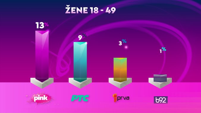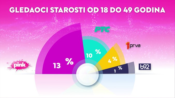 među ženskom publikom, među gledaocima starosti od 18 do 49 godina, među ženskom publikom starosti od 18 do 49 godina, među gledaocima sa teritorije Beograda i među urbanom populacijom, dok je od komercijalnih televizija bila gledanija među gledaocima iz prestonice starosti od 18 do 49 godina.