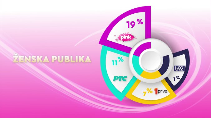 Televizija Pink je od svih komercijalnih emitera, ali i Javnog servisa Srbije gledanija u totalu, među ženskom publikom, među gledaocima starosti od 18 do 49 godina, među ženskom publikom starosti od 18 do 49 godina, među gledaocima sa teritorije Beograda, među gledaocima iz prestonice starosti od 18 do 49 godina, kao i među urbanom populacijom.