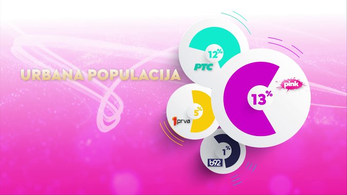 Televizija Pink je od svih komercijalnih emitera, ali i Javnog servisa Srbije gledanija u totalu, među ženskom publikom, među gledaocima starosti od 18 do 49 godina, među ženskom publikom starosti od 18 do 49 godina, među gledaocima sa teritorije Beograda, među gledaocima iz prestonice starosti od 18 do 49 godina, kao i među urbanom populacijom.