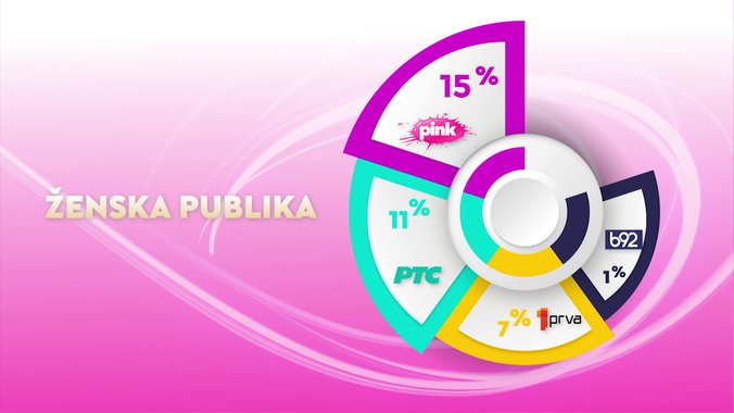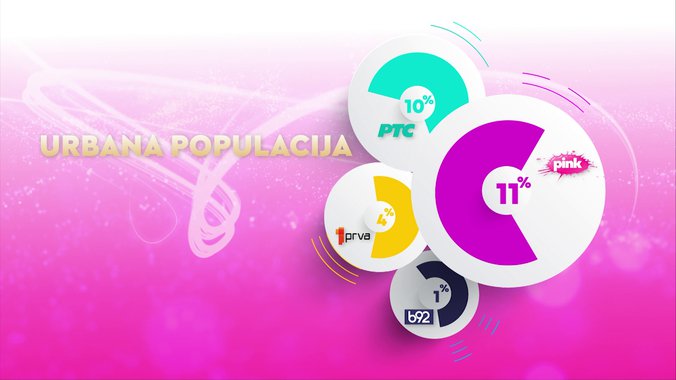 Televizija Pink je od svih komercijalnih emitera, ali i Javnog servisa Srbije bila gledanija u totalu, među ženskom publikom, među ženskom publikom starosti od 18 do 49 godina, među gledaocima sa teritorije Beograda, među gledaocima iz prestonice starosti od 18 do 49 godina i među urbanom populacijom, dok je od svih komercijalnih televizija bila gledanija među gledaocima starosti od 18 do 49 godina.