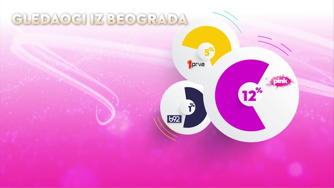 Televizija Pink je od svih komercijalnih emitera bila gledanija u totalu, među gledaocima starosti od 18 do 49 godina, među ženskom publikom starosti od 18 do 49 godina, među gledaocima sa teritorije Beograda, među gledaocima iz prestonice starosti od 18 do 49 godina i među urbanom populacijom, dok je i od Javnog servisa Srbije bila gledanija među ženskom publikom.