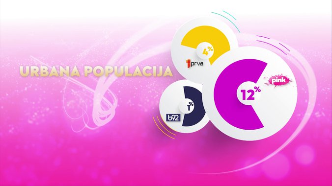 Televizija Pink je od svih komercijalnih emitera bila gledanija u totalu..... među gledaocima starosti od 18 do 49 godina.... među gledaocima sa teritorije Beograda..... i među urbanom populacijom, dok je i od Javnog servisa Srbije bila gledanija među ženskom publikom.... među ženskom publikom starosti od 18 do 49 godina.... kao i među gledaocima iz prestonice starosti od 18 do 49 godina.