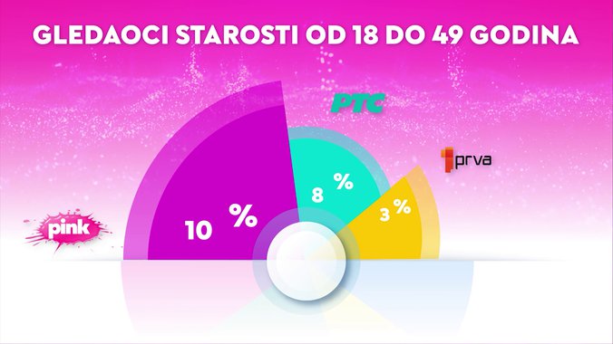 Televizija Pink je od svih komercijalnih emitera, ali i Javnog servisa Srbije bila gledanija u totalu, među ženskom publikom, među gledaocima starosti od 18 do 49 godina, među ženskom publikom starosti od 18 do 49 godina, među gledaocima sa teritorije Beograda i među gledaocima iz prestonice starosti od 18 do 49 godina, dok je od svih komercijalnih televizija bila gledanija među urbanom populacijom.