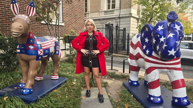 Jovana se, naime, u duhu ovih izbora, koji mogu odlučiti o sudbini celog sveta, slikala pored čuvenih maskota dve političke struje, magarca i slona.