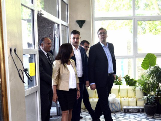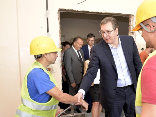 Predsednik Srbije je prethodno, u okviru svoje dvodnevne posete Nišavskom okrugu, obilšao radove na rekonstrukciji Osnovne škole "8. septembrar".