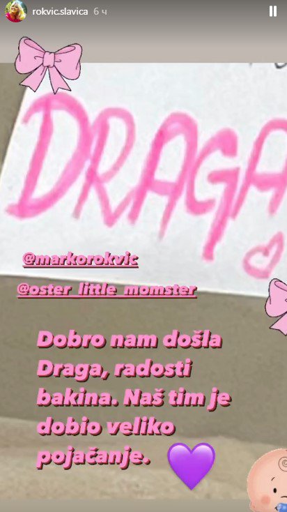 Prelepe vesti je podelila Slavica Rokvić na svom Instagram profilu, koja je otkrila i kako će se dete zvati, a potom se porodica Rokvić uputila u prestonički restoran, kako bi proslavili dolazak naslednice.