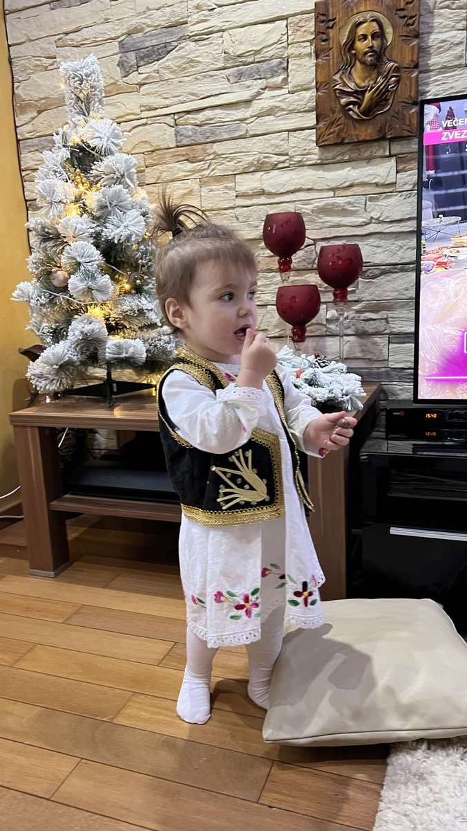 Danas je bila položajnik svojoj baki i deki, i obukli smo je u narodnu nošnju. Trudim se da je naučim pravim hrišćanskim običajima i vrednostima. Ona jako voli praznike, in veoma je srećno dete.
