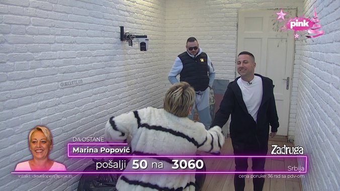 Voditelj Marko Đedović došao je u sobu za izolaciju po nominovane zadrugare, Filipa Cara i Marinu Popović, pa sa njima krenuo u salu za igrice gde će se njih dvoje takmičiti za dupliranje glasova.