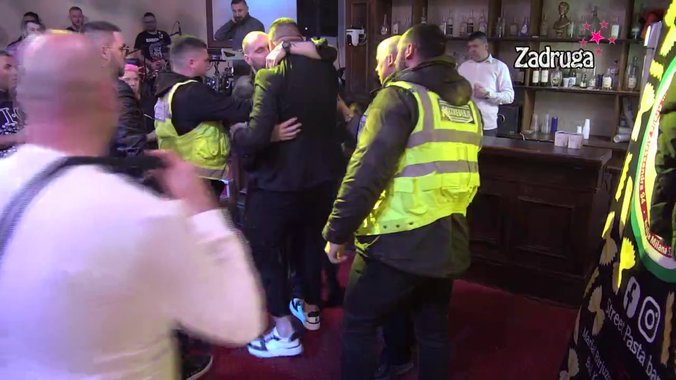 Zvezdan Slavnić se iznervirao što mu Filip Car ne veruje, pa je pokušao da slomi flašu, a Car ga je prigrlio kako bi sprečio haos.