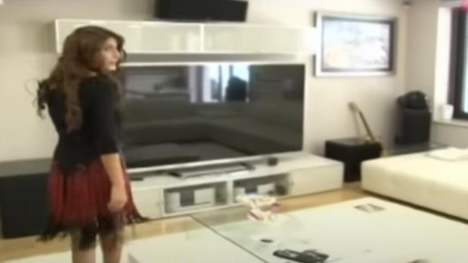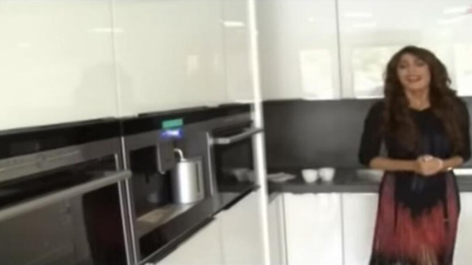U dnevnom boravku je ogromna garnitura, najnoviji televizor, kuhinja je opremljena po poslednjoj modi, kao i garderober koji se prostire duž čitave jedne prostorije.