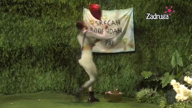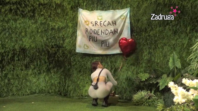 Srećan rođendan, piu piu - pisalo je na platnu, uz koje je stajao balon u obliku srca.