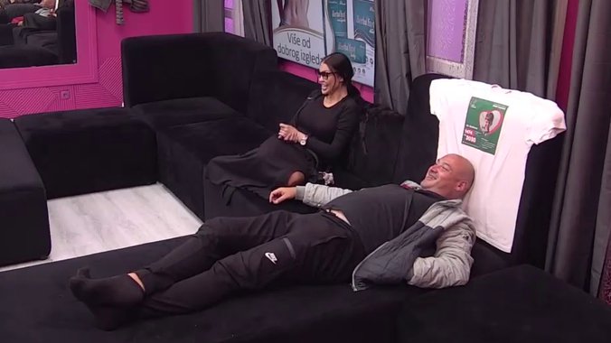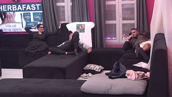 Maja Marinković je sedela na garnituri sa Bojanom Simićem- Bokijem i sa Lazarom Čolićem- Zolom, gde je Maja iskoristila priliku da dobaci Marku Janjuševiću- Janjušu koji je bio u prolazu.