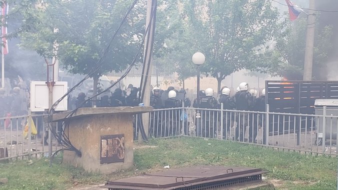 Jake snage Kfora su u poslepodnevnim časovima razbile skup građana koji su bili okupljeni ispred opštine Zvečan. Korišćeni su suzavac i šok-bombe, a kosovska policija koristila je bojevu municiju.