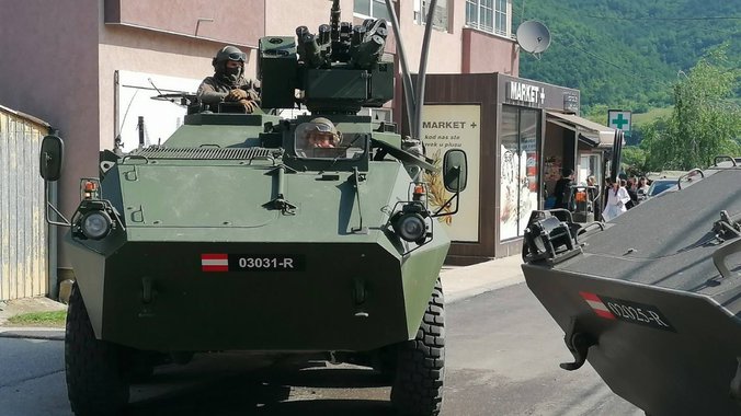 KFOR u saopštenju navodi da su njegove jedinice raspoređene u četiri opštine na severu KiM u cilju obuzdavanja, kako tvrdi, nasilnih demonstracija do kojih je došlo nakon što su novi albanski gradonačelnici pokušali da preuzmu dužnost. Ta misija navodi da je nekoliko vojnika italijanskog i mađarskog kontingenta KFOR-a bilo meta, kako ta misija tvrdi, ničim izazvanih napada i zadobili povrede sa prelomima i opekotinama usled eksplozije zapaljivih sredstava.