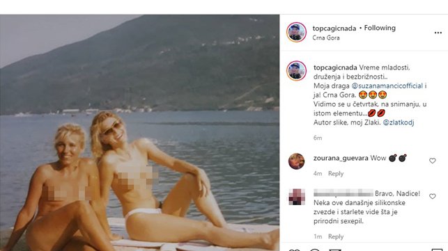 Na toj fotki, koja je nastala devedesetih godina na moru, je ona sa Suzanom Mančić i to obe u toplesu. Fotografisao ih je Nadin suprug Zlatko.