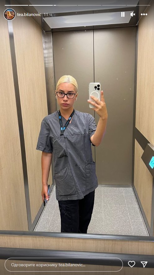 Bilanovićeva ne objavljuje često fotografije sa radnog mesta, ali je sada i to uradila. Podelila je selfi iz lifta, a na sebi ima uniformu medicinske sestre.
