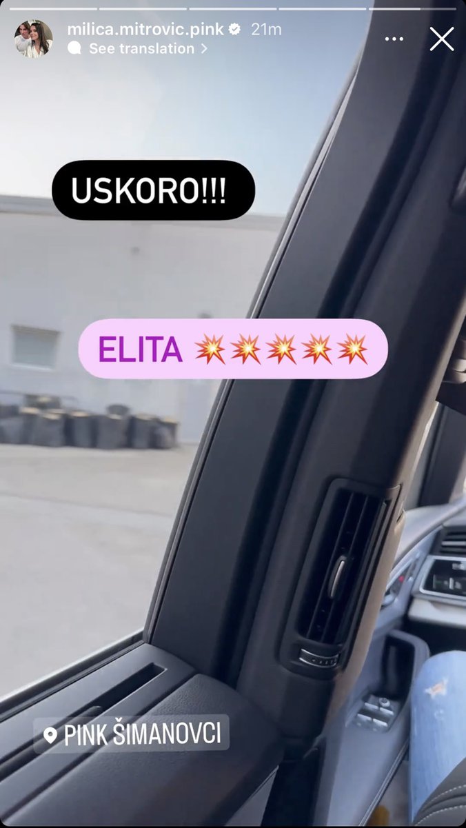 Naime, Milica Mitrović objavila je fotografiju iz automobila na velelepnom imanju u Šimanovcima, te je tom prilikom zagolicala maštu mnogim vernim pratiocima TV Pink i onima koji željno iščekuju početak "Elite", nikad viđene i spektakularnije sezone rijalitija na našim prostorima i šire.