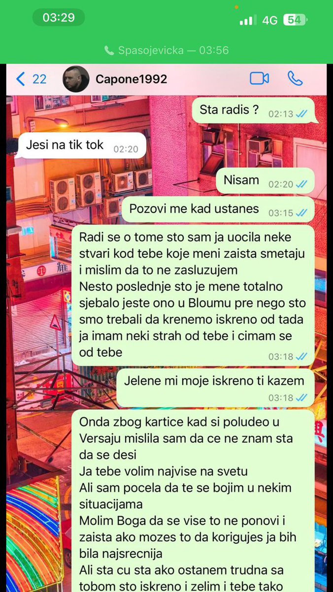 Radi se o tome što sam ja uočila neke stvari kod tebe koje meni zaista smetaju i mislim da to ne zaslužujem. Nešto poslednje što ej mene totalno sje*alo jeste ono u Bloumu pre nego što smo trebali da krenemo iskreno od tada ja imam neki strah od tebe i cimam se od tebe. Jelene mi moje iskreno ti kažem. Zbog kartice kad si poludeo u Versaju mislila sam da će se ne znam šta desiti. Počela sam da se bojim u nekim situacijama - napisala je Aleks.