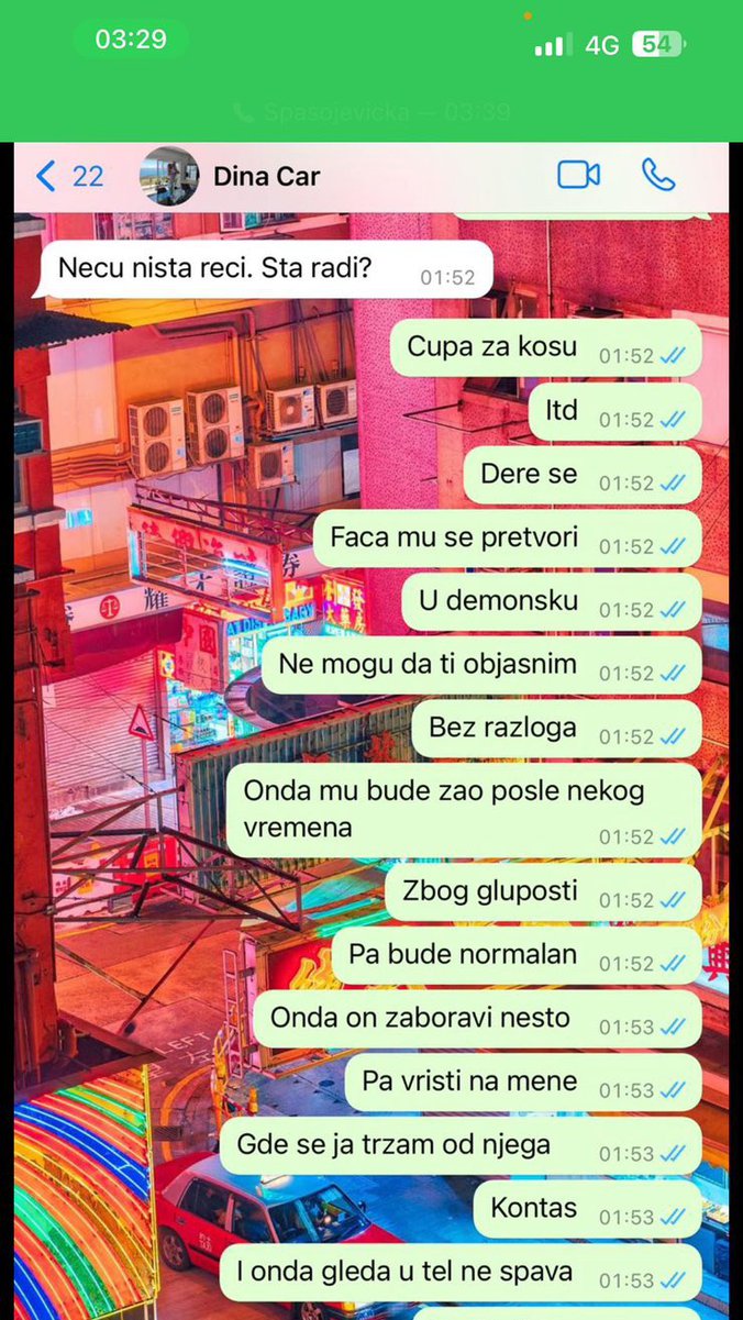 Čupa za kosu, dere se, faca mu se pretvori u demonsku. Ne mogu da ti objasnim. Bude mu žao posle nekog vremena, pa zaboravi nešto, pa vrišti na mene gde se ja trzam - napisala je Aleks Dini.
