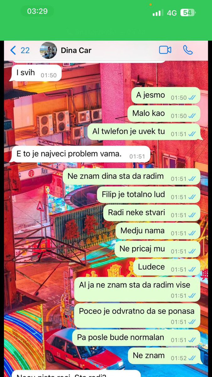 Ne znam Dina šta da radim, totalno je lud Filip. Među nama, ne pričaj mu ludeće - apisala je Aleks.