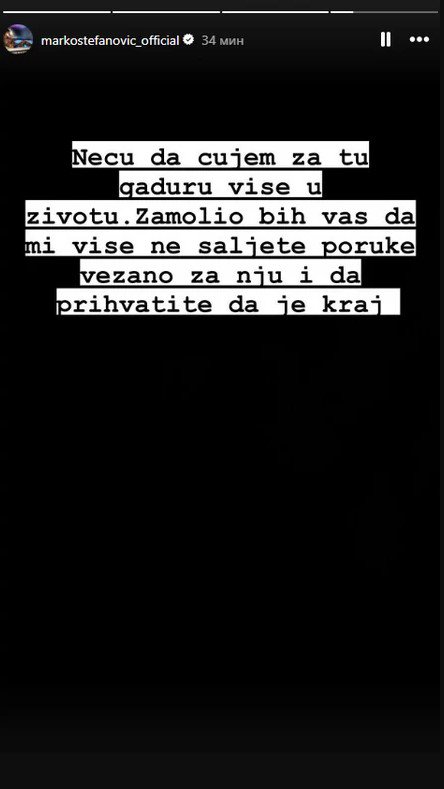 - Neću da čujem za tu gaduru više u životu. Zamolio bih vas da mi više ne šaljete poruke vezano za nju i da prihvatite da je kraj - poručio je Marko, dok se Sanja nije oglašavala.