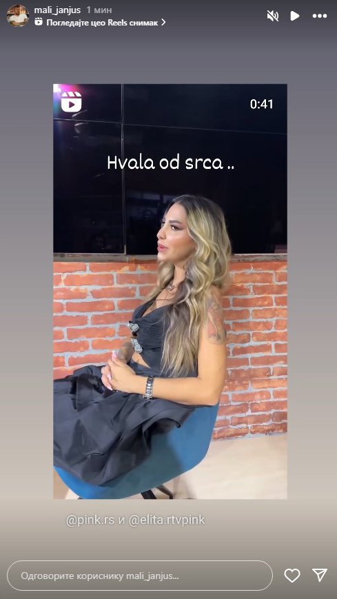 Nakon što je Aneli Ahmić odovarala na pitanja u okviru rubrike 'Ili ili' na Pink.rs portalu u kom je birala između Asmina i Janjuša, oglasio se Janjušević, te izgovorio samo tri reči: