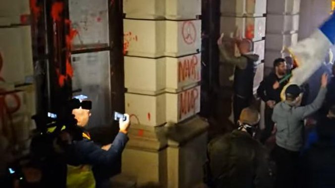 Naime, huligani koji rade pod komandom opozicije demoliraju Gradku kuću u Novom Sadu, razbijaju stakla, uriniraju po njoj, bacaju baklje, a potom su je zapalili.