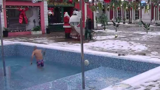 I ovog jutra Lepog Miću nisu omele niske temperature i sneg da se baci u bezen, i otpliva nekoliko krugova.