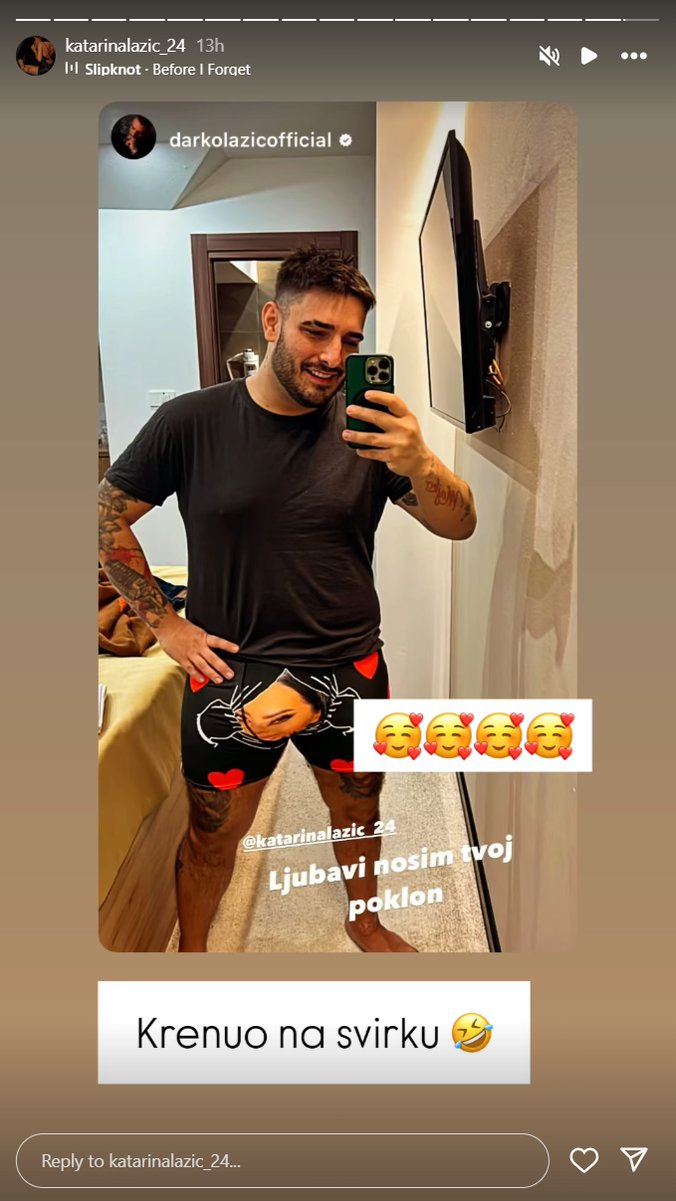 - Ljubavi, nosim tvoj poklon - napisao je Darko, dok je Kaća takođe podelila njegovu objavu i dodatno se našalila napisavši:"Krenuo na svirku".