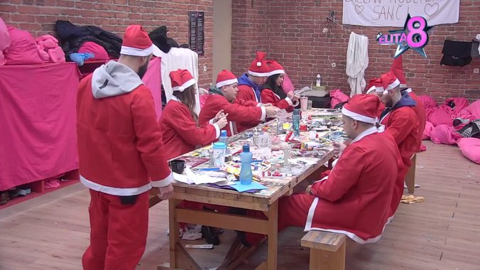 Desetoro takmičara "Elite" dobili je zadatak da budu radnici u fabrici, a danas im je Veliki šef rekao da prave novogodišnje ukrase od kline, koje moraju da dekorišu bojama i cirkonima.