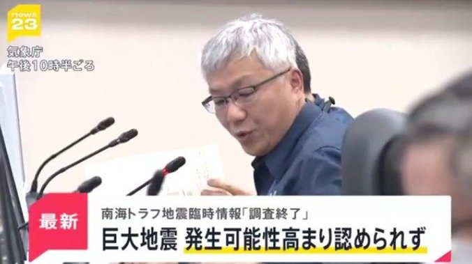 Nakon što je istraga završena, agencija je objavila da se "ne smatra da je mogućnost pojave mega zemljotresa veća nego uobičajeno".