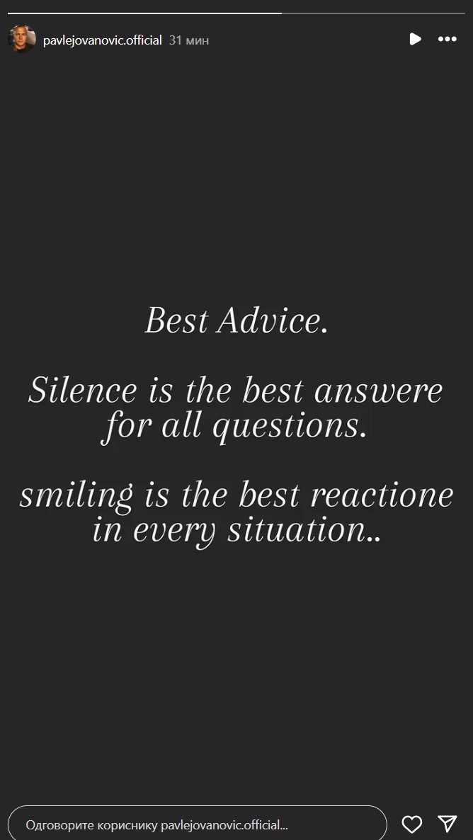 Pavle se danas oglasio na svom istragramu i po svemu sudeći poslao poruku Anđeli i Gastozu