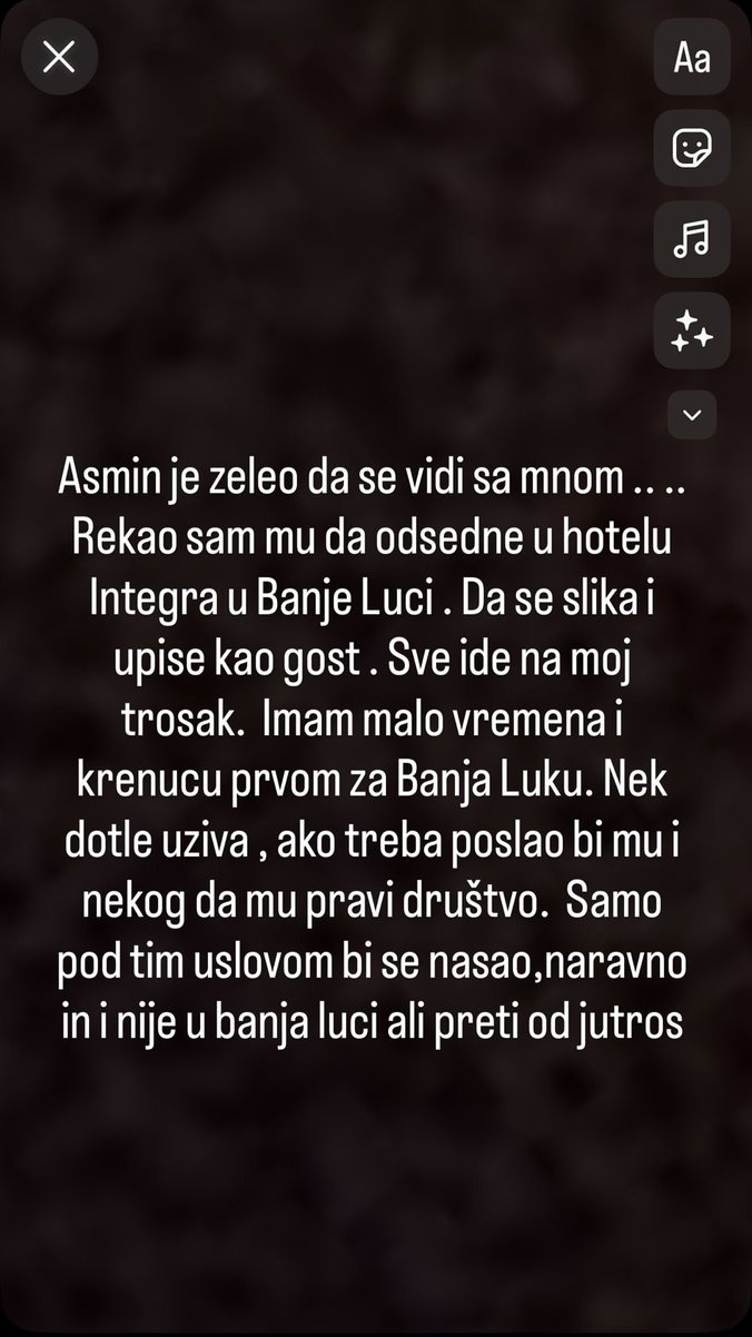 - Poslao sam mu u Banja Luku da dođe u hotel, sve mu plaćam i nestao je. Danas ne staje, rekao je kako će sina da mi j*be, ženu bivšu - govorio je Luka.