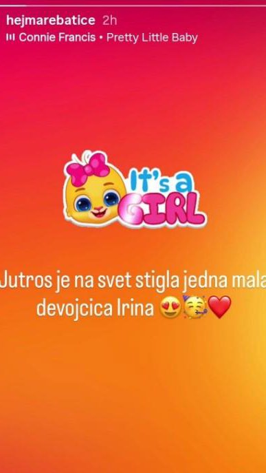 Milica je na svet donela devojčicu Irinu, a vesti je na svom Instagram profilu potvrdio upravo njen suprug.