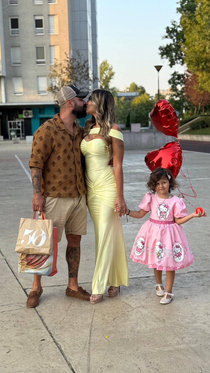 Mi smo odmah pronašli snimak koji posedujemo, a na kom su kamere jasno usnimile kako Luka Vujović drži malu Noru u naručju, a potom se sa sve njom okreće da poljubi Aneli i to u usta.