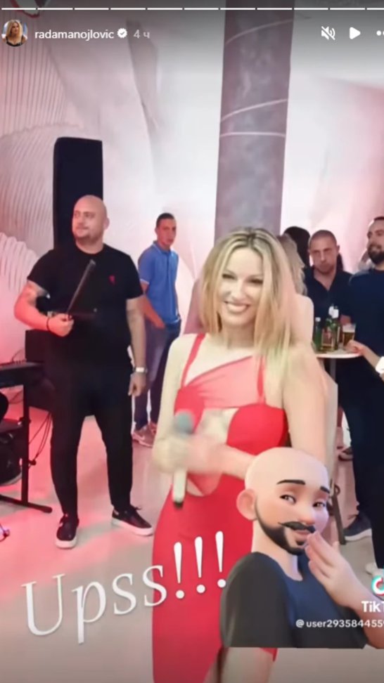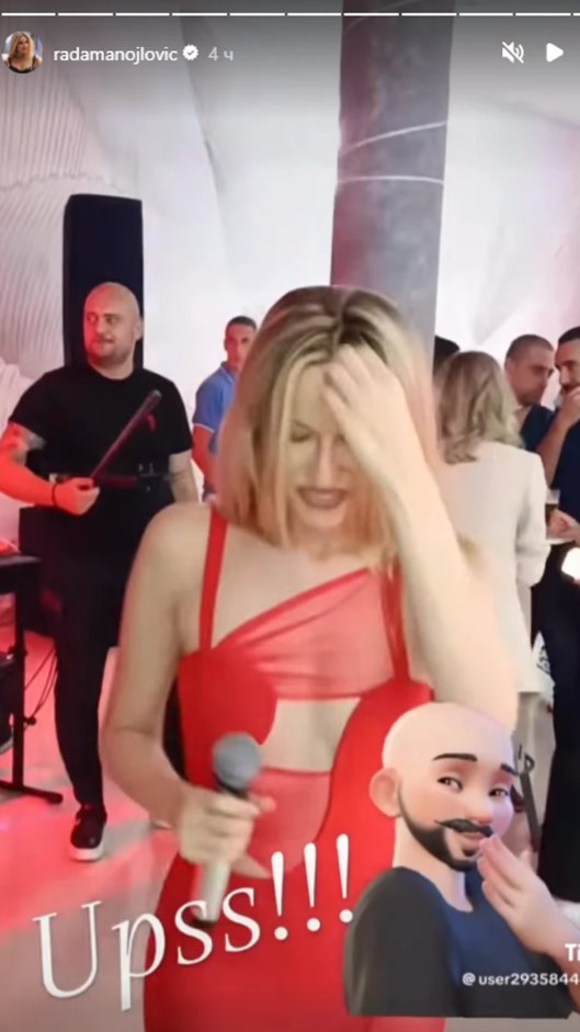 Naime, Rada je za ovu priliku obukla usku crvenu haljinu, koja je sva u prorezima i sa čipkom, te je sve vreme đuskala, a njena vitka figura bila je u prvom planu.