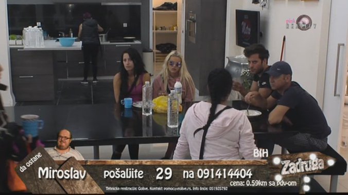 Izgleda da diskvalifikacija Uroša Ćertića, kao i večerašnje izbacivanje, utiču na zadrugare, jer su pojedini veoma nervozni, pa su spremni da se posvađaju za sitnicu. Primer za to je Andrijana Radonjić, koja se jako razbesnela na svoju drugaricu Saru Reljić.