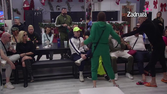 Voditeljka Ivana Šopić najavila je naredni video klip na kom su zadrugari imali priliku da vide kako se Marko Marković i Ana Spasojević rvaju na krevetu, uz niz osmeha.