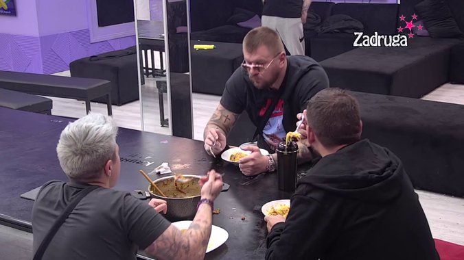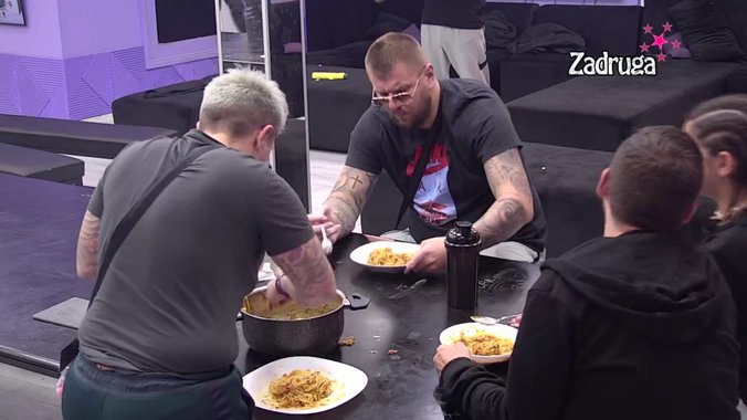 Nakon haotičnog popdneva u kući, pojedini zadrugari su odlučili da pripreme zajedničku večeru. Oni su uredno seli za sto i počastili se bolonjezama.