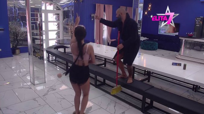 Oni su u dnevoj sobi izveli pravi performans, ge su igrali sa metlom i džogerom i sve vreme zabavljali cimere koji su se našli u njihovoj blizini.