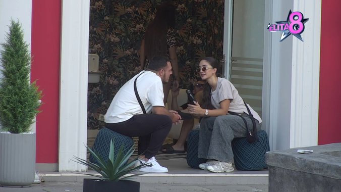 Anđela Đuričić i Nenad Marinković Gastoz seli su u dvorište kako bi smilili zadatak koji će predstaviti drvetu mudrosti kako bi otišli zajedno na Rajsko ostrvo.