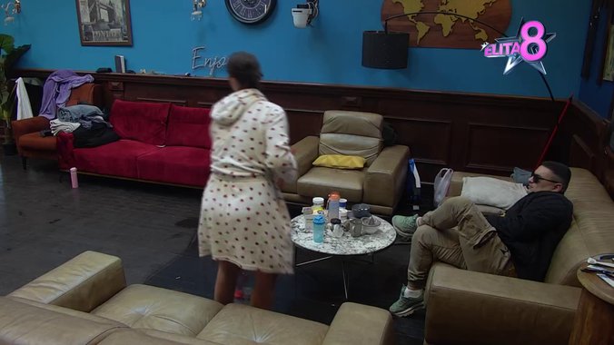 Bebica je ležao na kauču, a Miljana se latila džogera, kako bi pokušala da ga iznervira, te je brisala oko njega, na šta je dobila očekivanu reakciju.