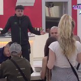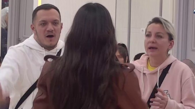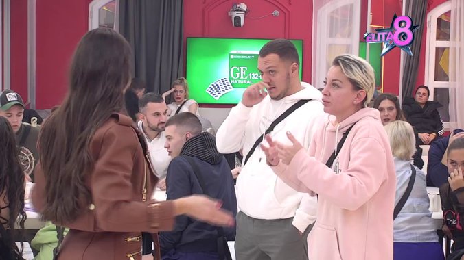 Voditelj Milan Milošević podigao je Anđelu Đuričić, kako bi on sa njom porazgovarao o pljuvačini iza leđa od strane Keti Samardžić.