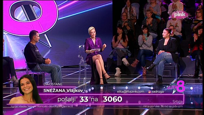 Upravo je počela emisija "Izbacivanje", a voditeljka Dušica Jakovljević u studiju je ugostila oca od Sneže Vlajković i sestru Jordanke Denčić Džordi.