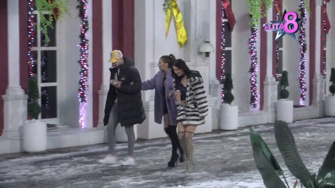 Ena Čolić i Slađa Lazić Poršelina krenule su ka kazinu, a pošto su nosile jako visoke štike imale su problem da hodaju po snegu, pa je Uroš Rajačić pritekao u pomoć i Enu uhvatio za ruku.