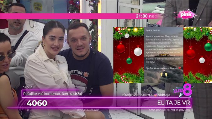 Voditelj Darko Tanasijević ušao je u Belu kuću, te zajedno sa učesnicima pogledao narednu novogodišnju čestitku koja je bila za Anđelu Đuričić.